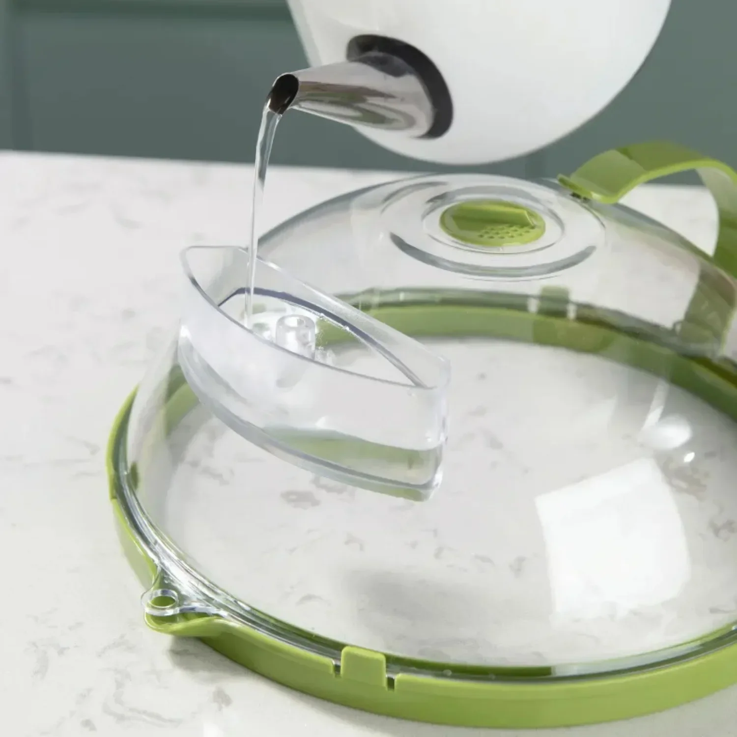 - Multi-functional design serves as both a splatter cover and a water steamer.